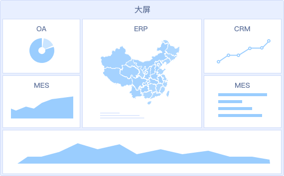 - 同一個(gè)大屏看板可以輕松整合ERP/OA/MES等多業(yè)務(wù)系統(tǒng)的數(shù)據(jù),打破信息孤島,進(jìn)行綜合展示分析,讓決策更清晰